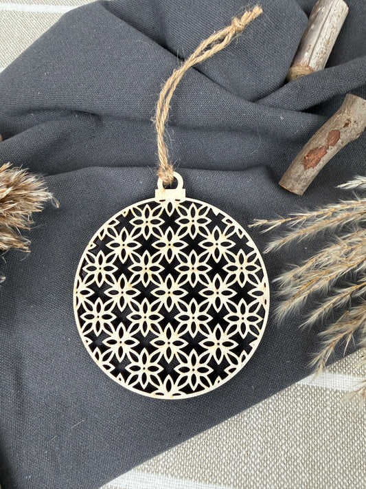 Christbaumkugel aus Holz mit Muster