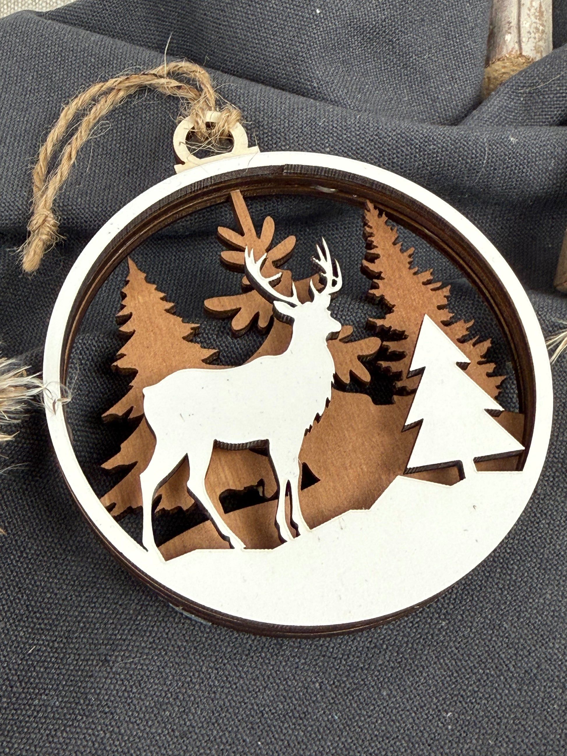 • Wintermotive: Hirsch, Schneeflocken, Tannen