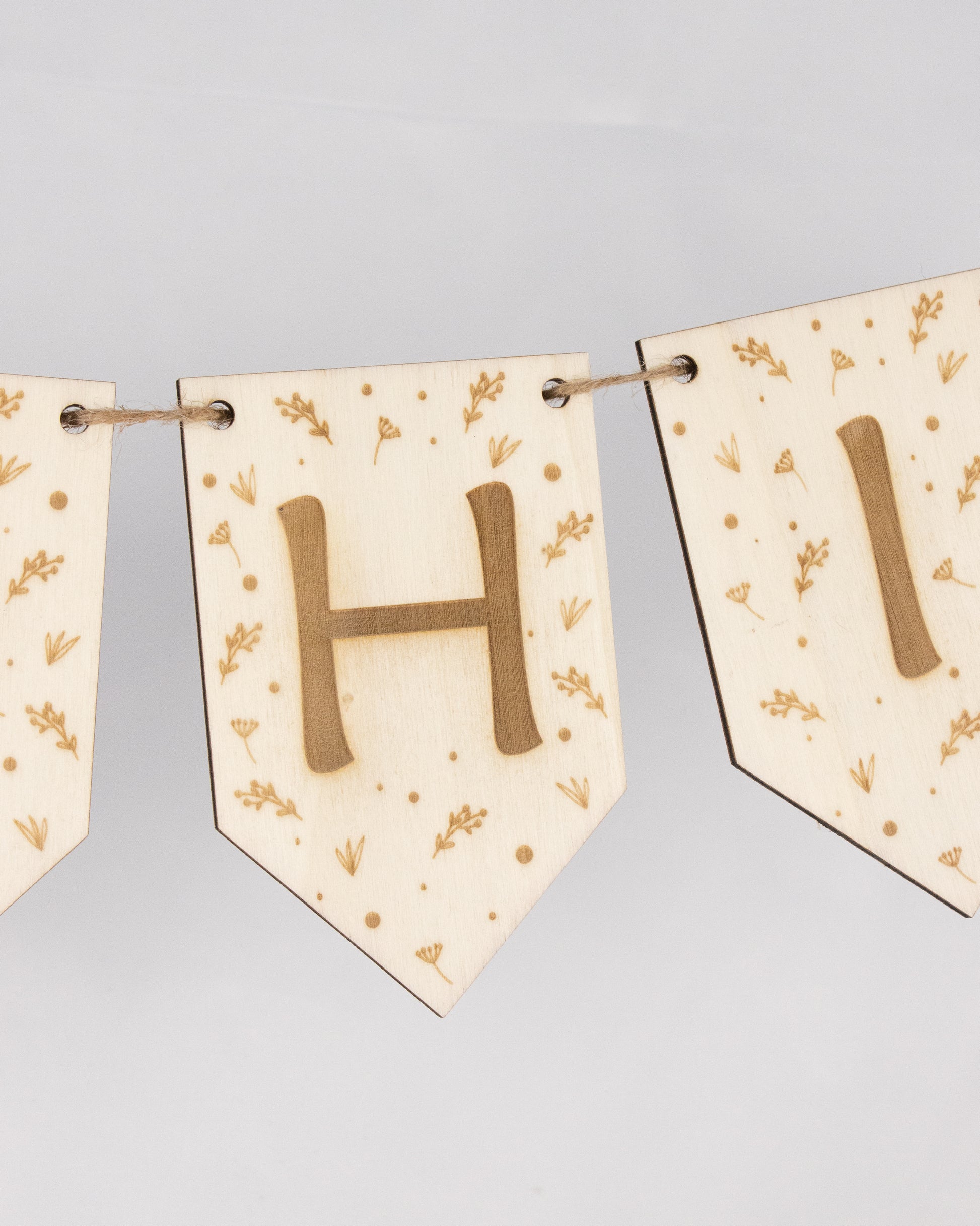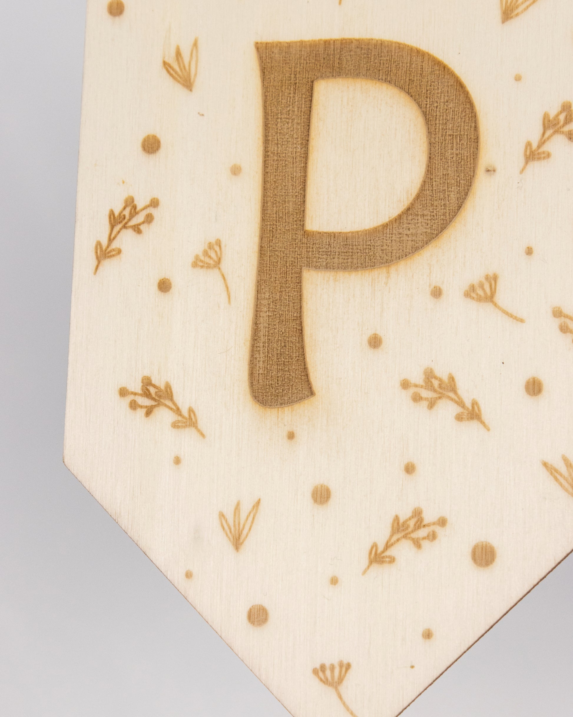 Jeder Wimpel wird mit viel Liebe zum Detail gestaltet: Der Buchstabe und das filigrane Muster werden präzise graviert, während der gesamte Wimpel perfekt ausgeschnitten wird. Dank der integrierten Aufhängemöglichkeit lassen sich die Wimpel ganz einfach auf eine Schnur fädeln und zu einer stilvollen Girlande arrangieren. Die Höhe der einzelnen Wimpel beträgt 12,5 cm.