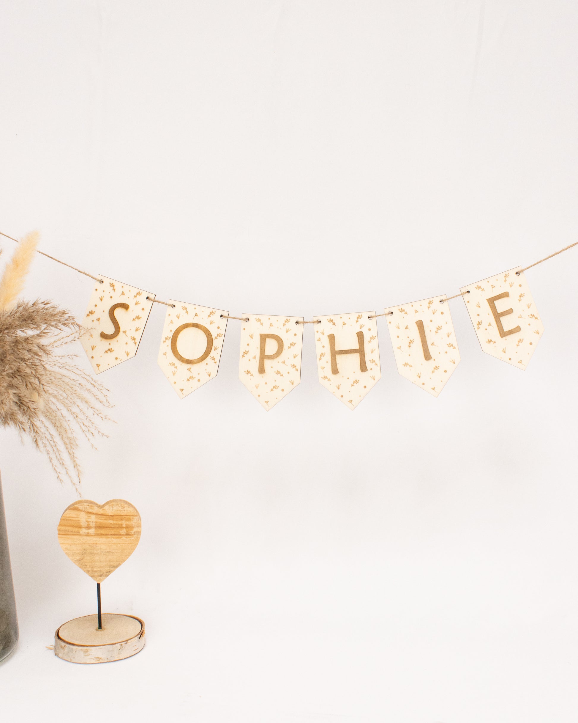Ob als Türschild, Namensgirlande oder besondere Geschenkidee – diese Holz-Wimpel-Girlande verleiht jedem Raum eine stilvolle und persönliche Atmosphäre. Bestelle jetzt deine Wunschgirlande und mache sie zu etwas ganz Besonderem!